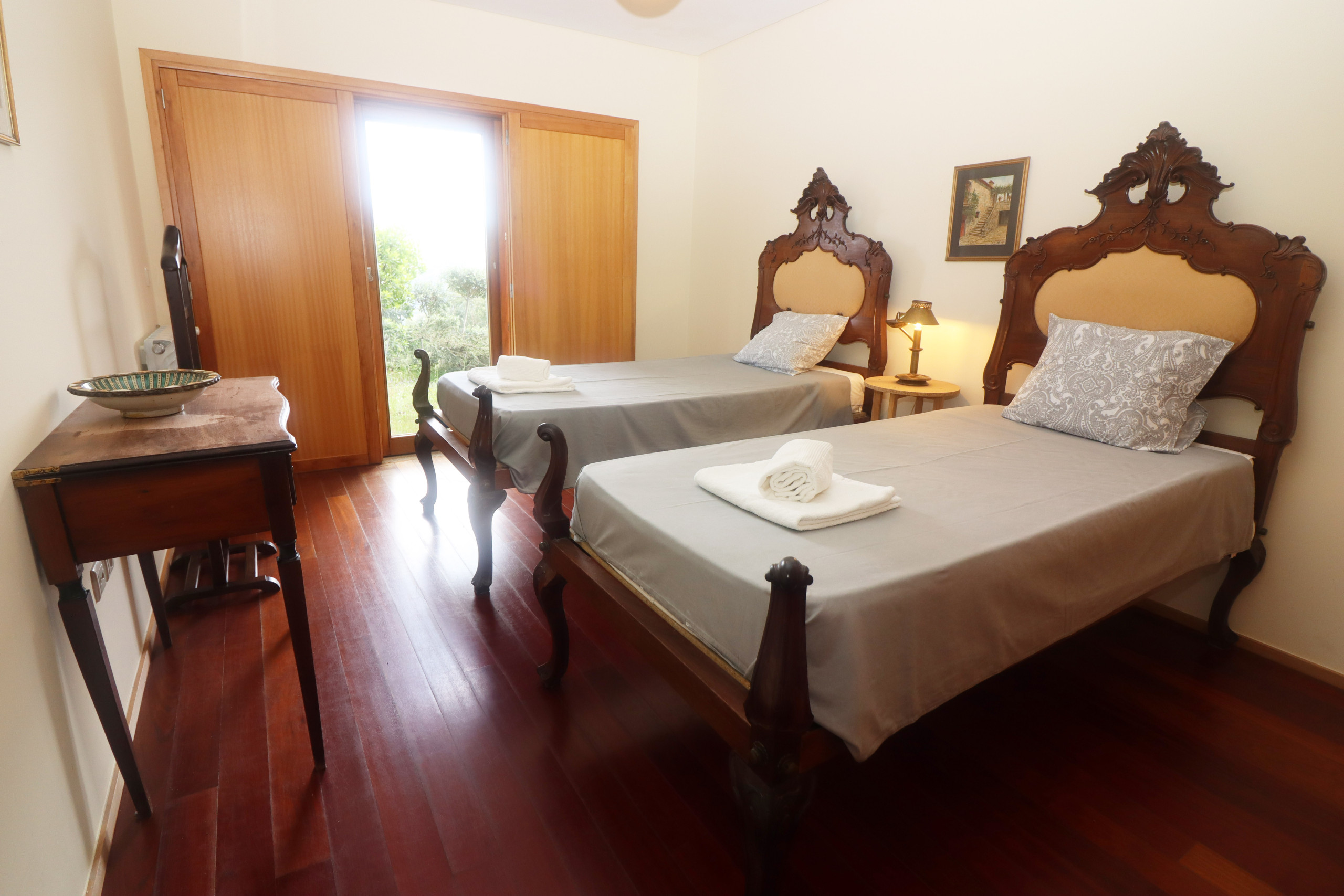 Casa Bela Vista consists of 3 double bedrooms with capacity for 6 people, 2 living rooms, 1 dining room and 2 bathrooms (1 WC and 1 with shower) and an equipped kitchen. Enjoy the balcony with a fantastic view of the mountain and the river, and of course, the private saltwater swimming pool.